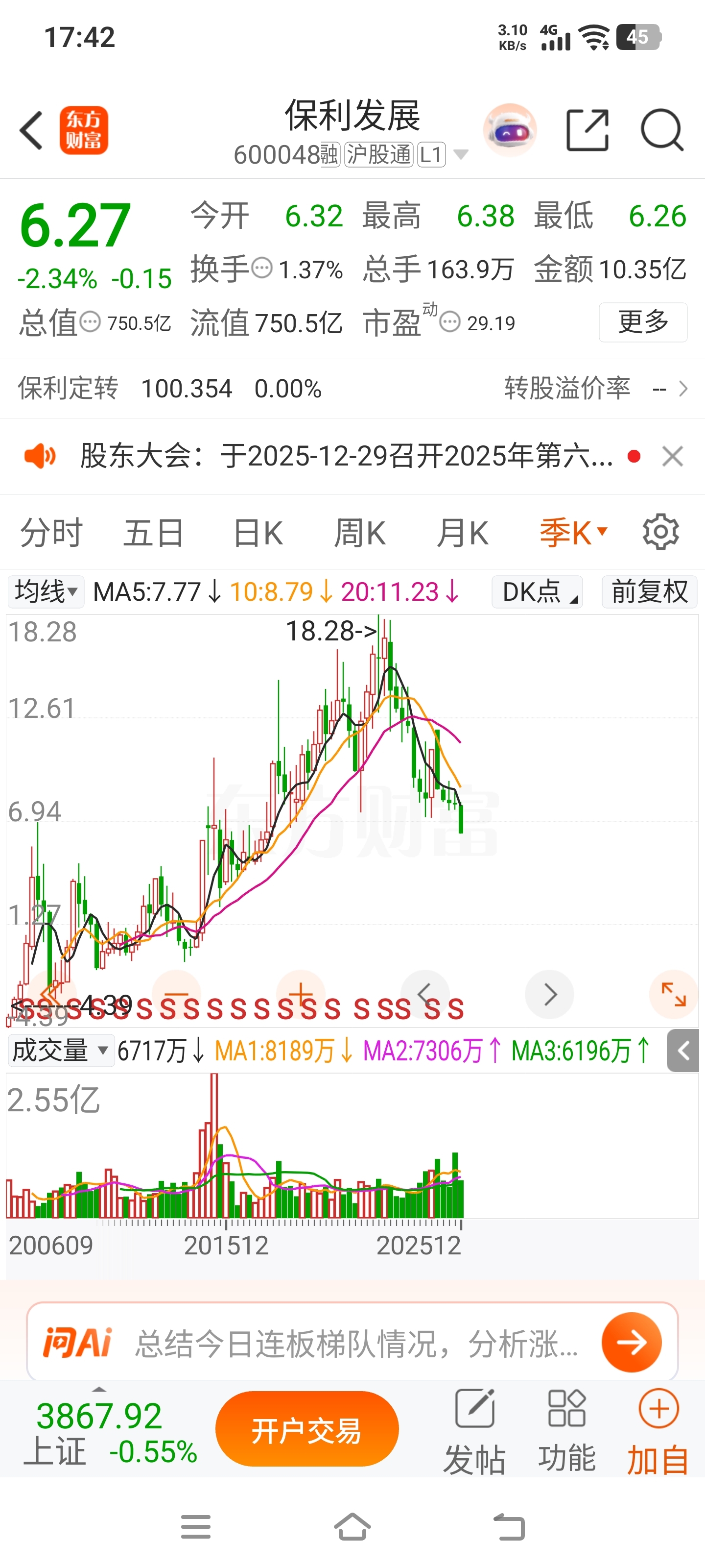 $保利发展(SH600048)$ 重要支撑位破了要加速下跌了抄底不要抄这种无底的股