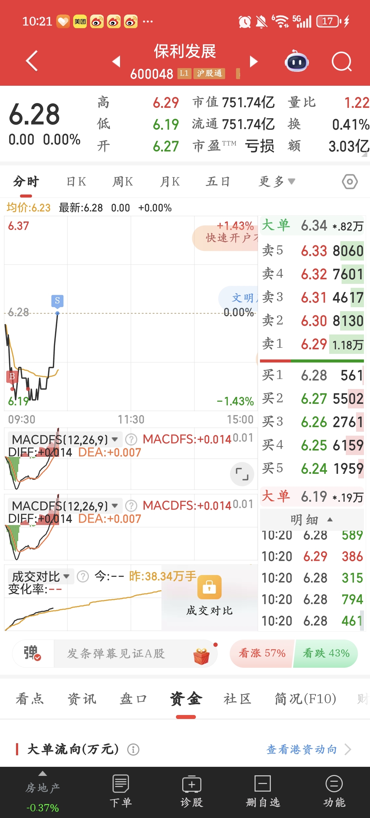 $保利发展(SH600048)$ 如果只是跌下去.让我做T,那我只能谢谢你
