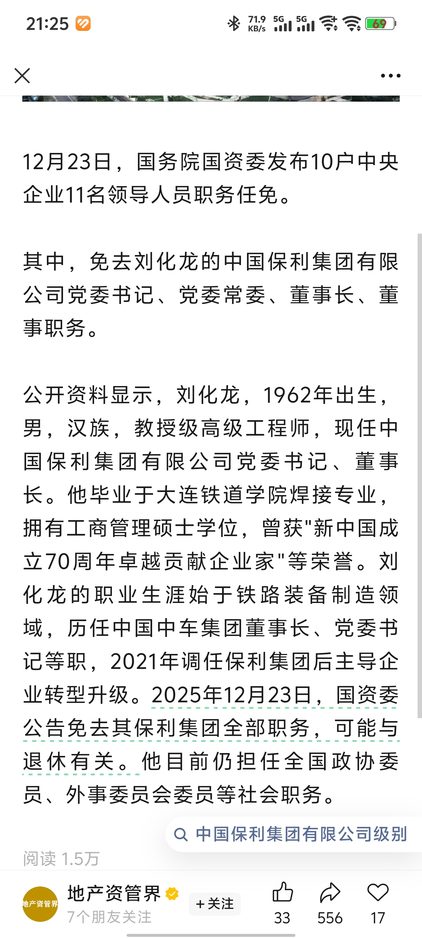 $保利发展(SH600048)$ 换帅会影响保利发展股价吗