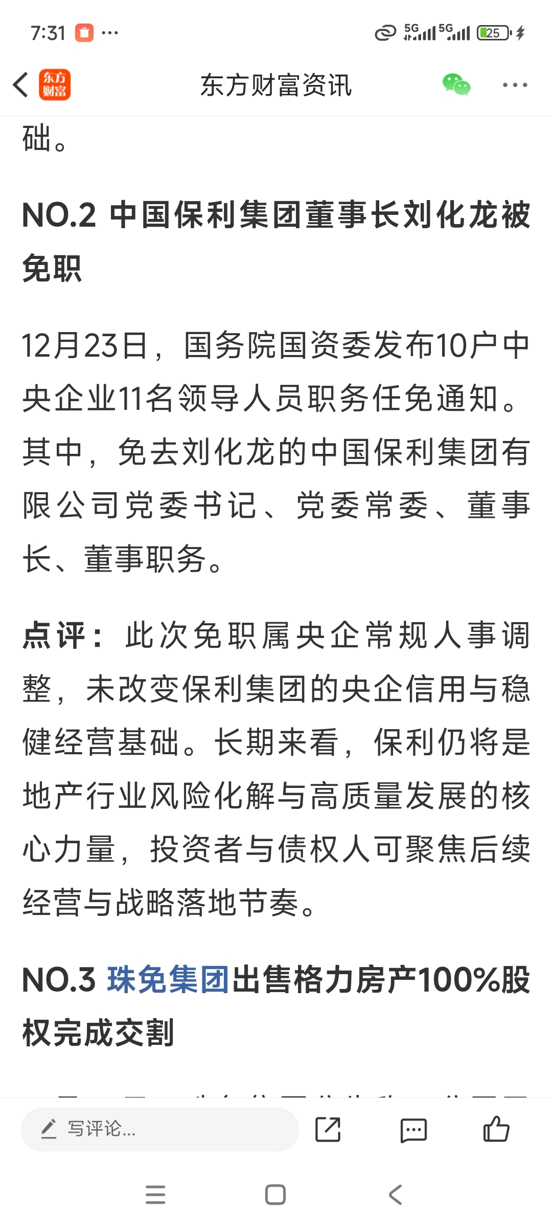 $保利发展(SH600048)$ 刘大董事长被免职你怎么看