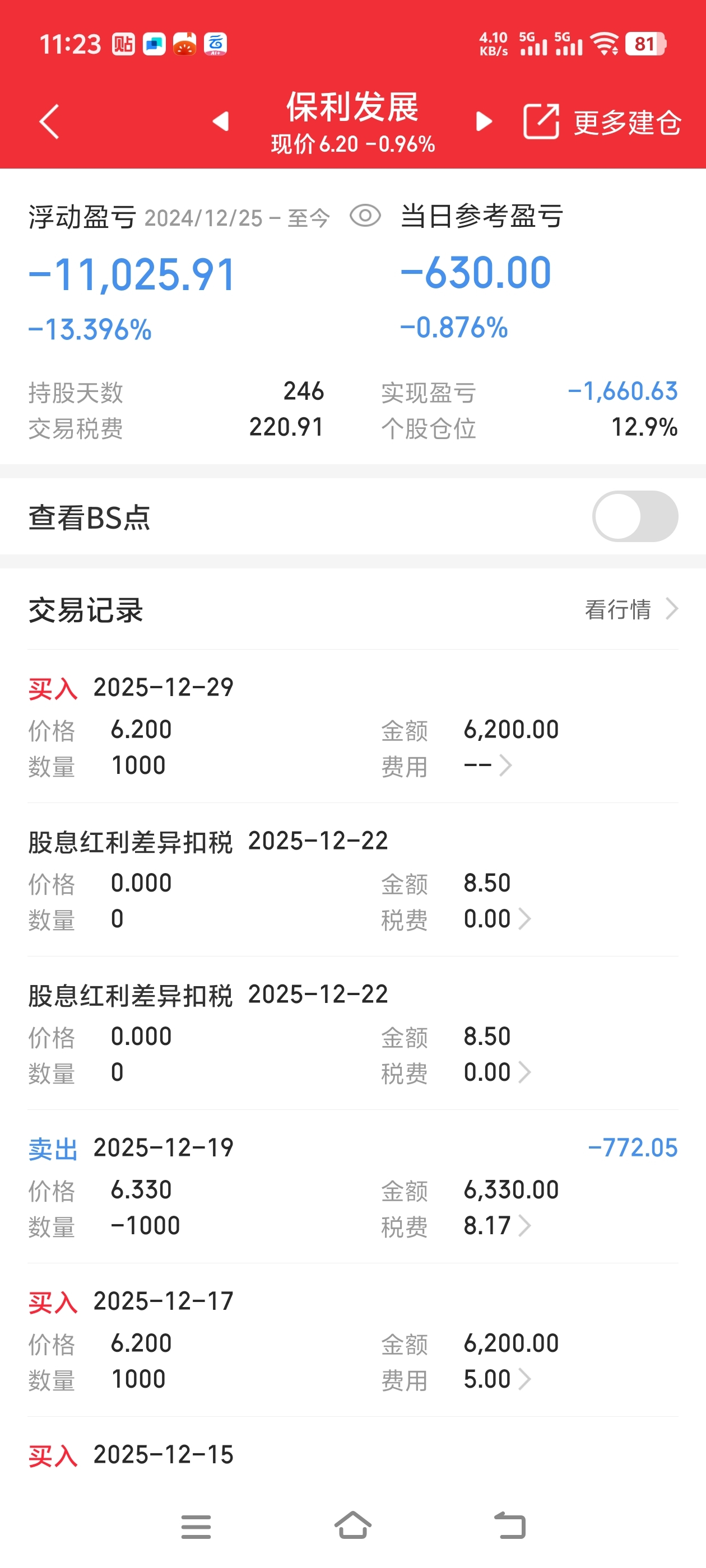 $保利发展(SH600048)$ 6.2买回来了,准备赚100跑路