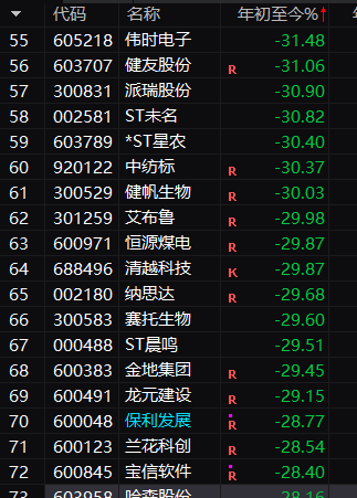 5500家上市公司2025年跌幅排名70保利有担当跑输80%ST