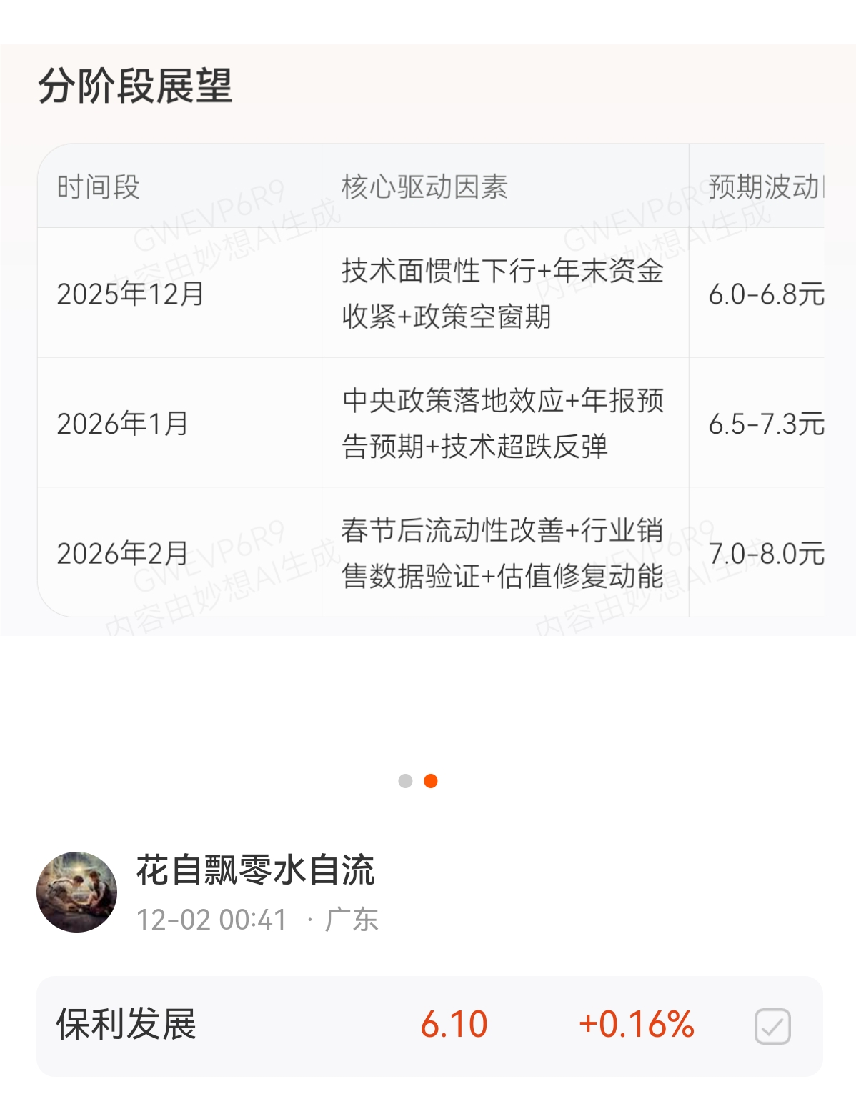被AI猜中了价格,12月果真那么差,再等一两月才能回本赚钱。$保利发展(SH600048)$