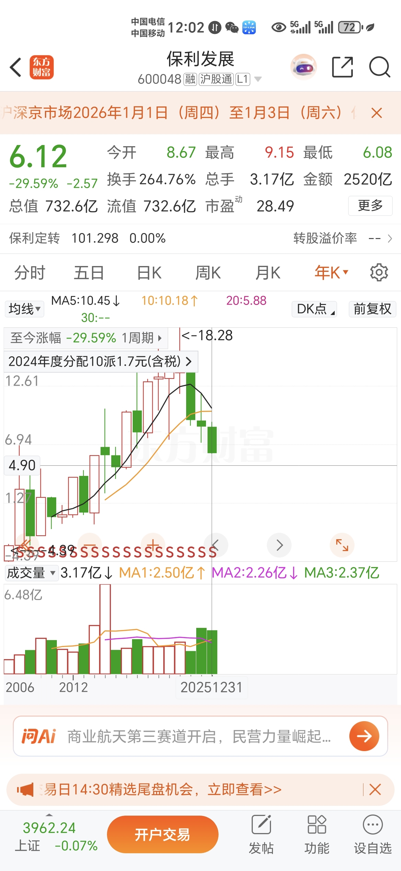 $保利发展(SH600048)$ 保利今天晚上全体员工开年会,欢天喜地庆祝保利发展荣登100个央企第一名,刘华龙功成身退,新董事长明年继续配合机构收割散户,寻找接盘侠。