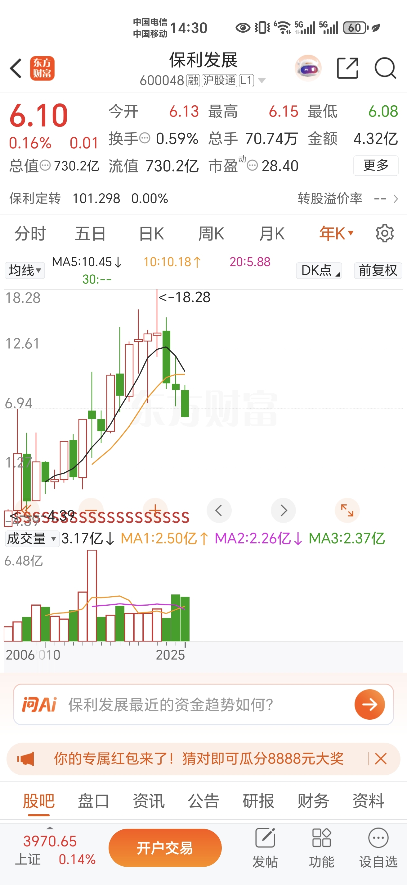 快收盘了,年线光头大阴线30%,6000加上市公司除了ST,B保利能排在倒数几名