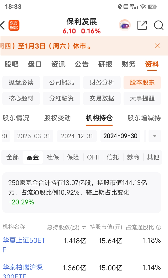 虽然3季报基金持仓不全,但对比去年3季报,已经减少了5亿股。