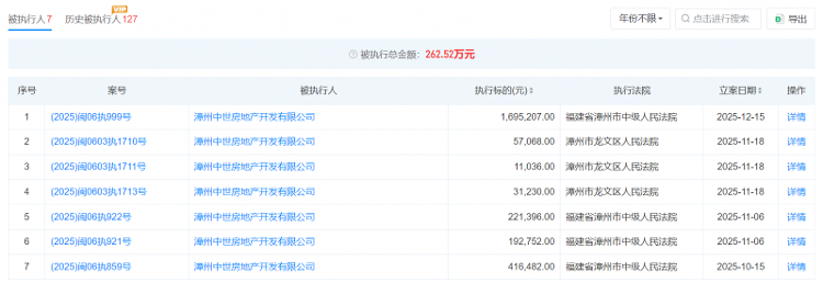 根据天眼查官网披露的漳州中世房地产开发有限公司电话,2025年12月31日,记者致电并表明身份后,对方称“打错了”并直接挂断,后续多次拨打均被拒接。