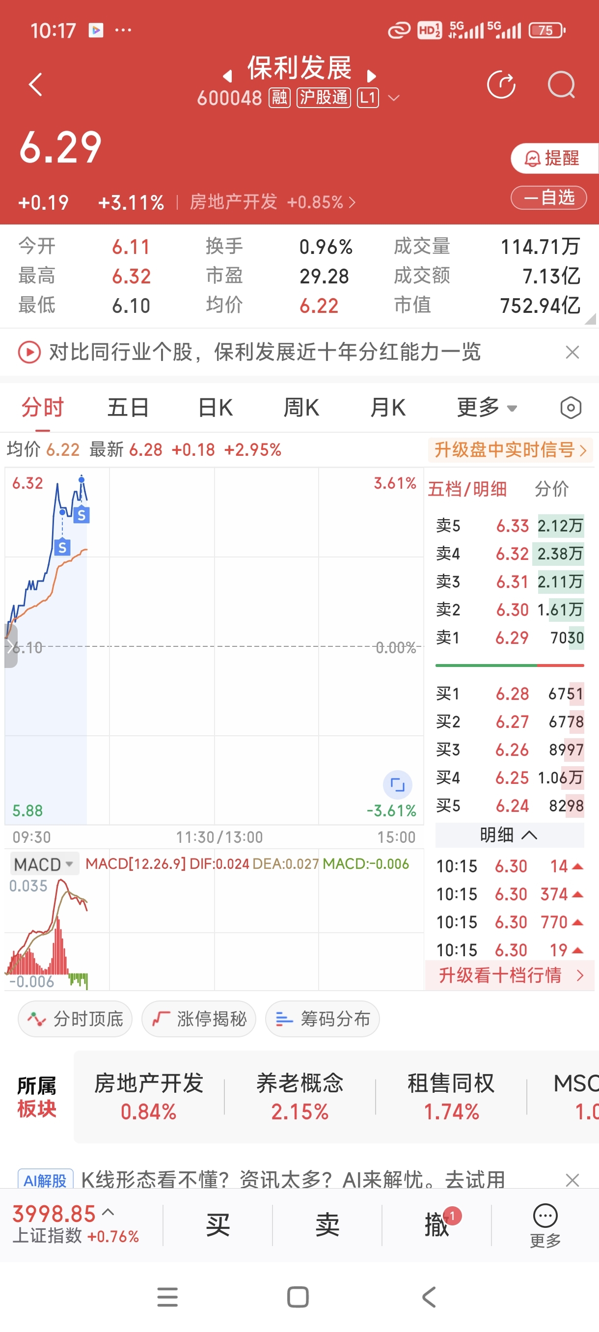 今日所有票都清仓了,保利亏了1毛钱,明年再战