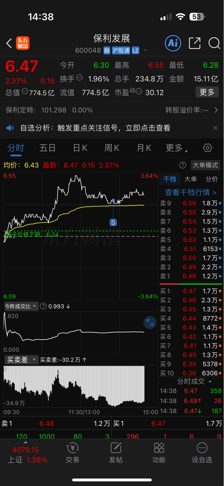$保利发展(SH600048)$ 我出了,主力你拉吧