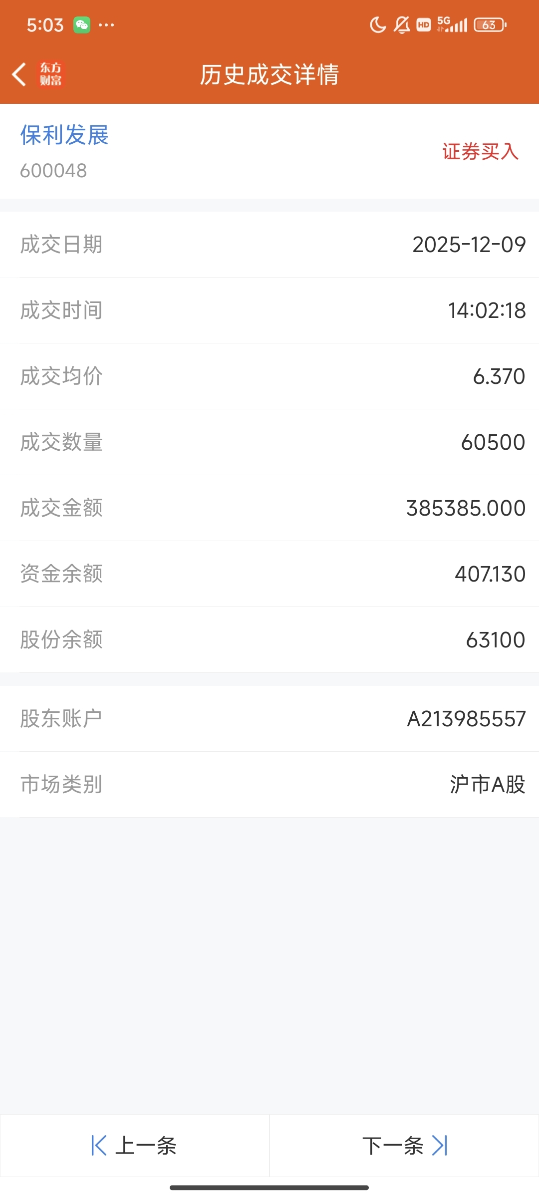 上次回保利,第二天就有5个点没走。相信他不值这个价。然后后面一泻千里,一直等到现