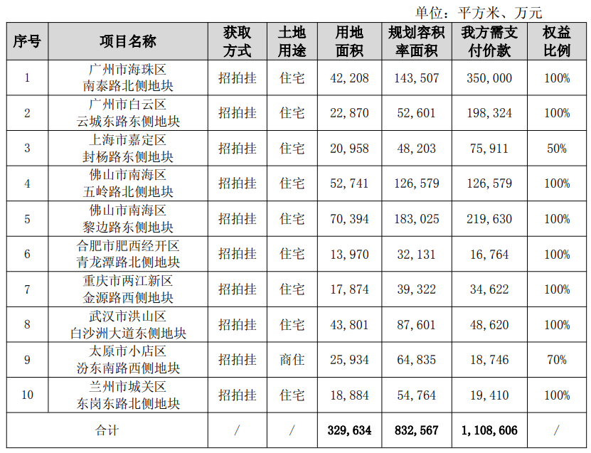 保利发展新增10个房地产项目 总斥资110.86亿元