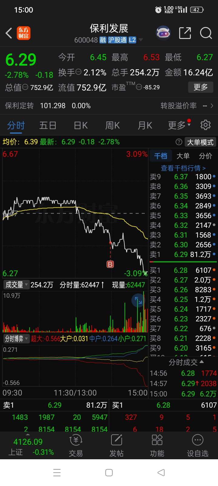 $保利发展(SH600048)$ 这是要完了吗,八十几万手要跑