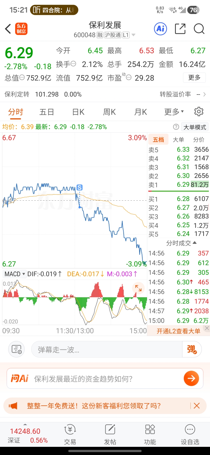 $保利发展(SH600048)$ 周五再接回了,看给不给机会了