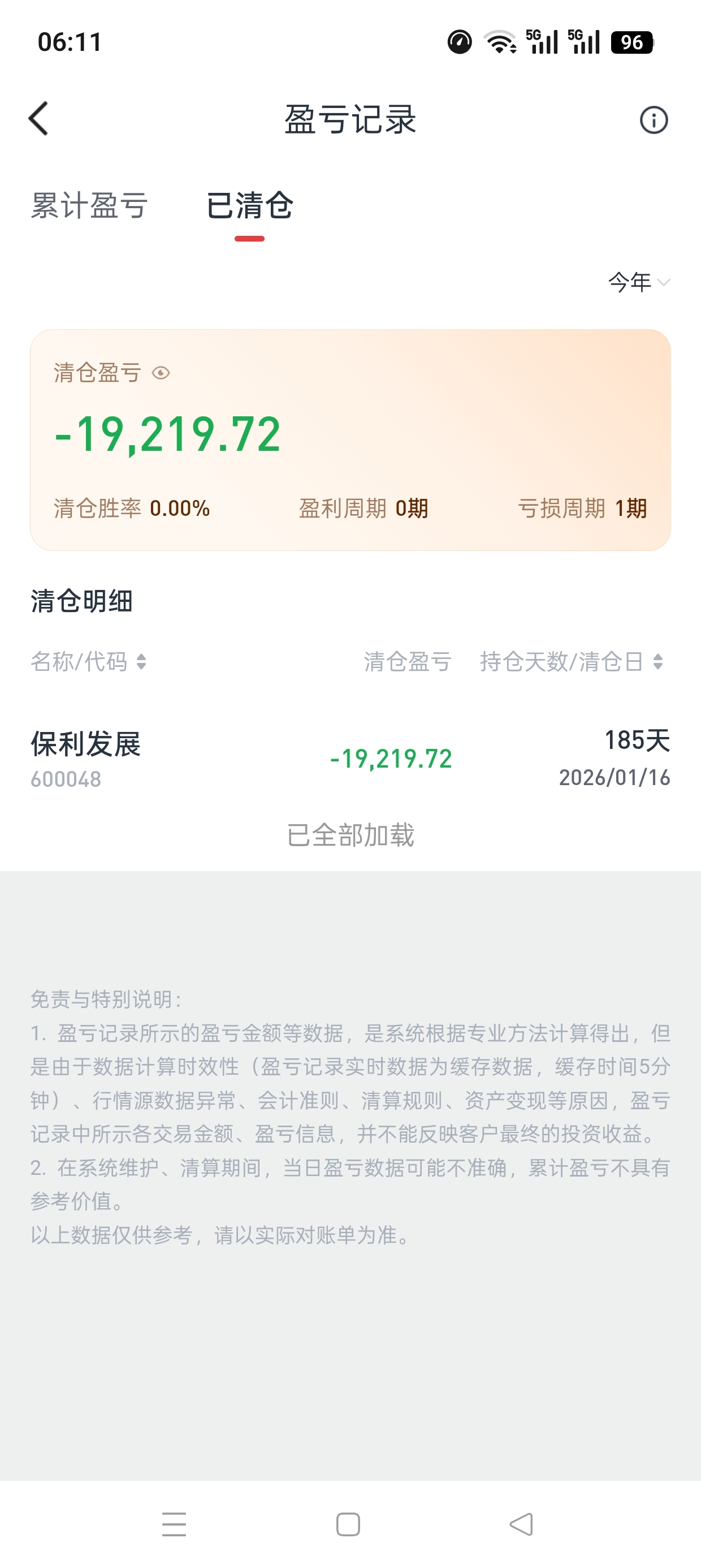 在保利发展亏了2.4了,中间买卖了一次,=(`*)))唉,已经到了亏损底线百分之