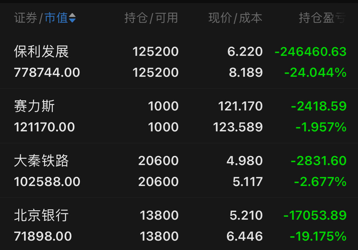 $保利发展(SH600048)$ $大秦铁路(SH601006)$ $赛力斯(SH601127)$ 信了特麽个斜的价值投资,在牛市里被套