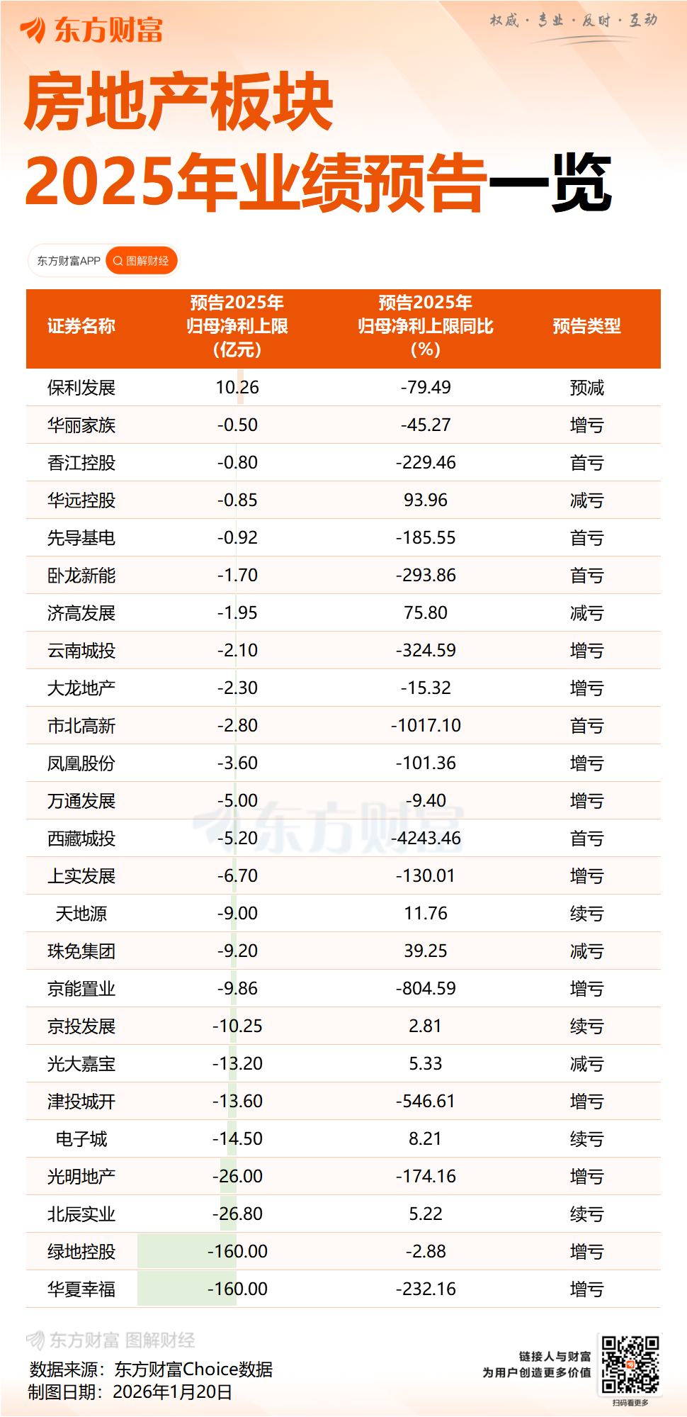 其余大多数业内房企,仍在业绩亏损的困局中挣扎。2024年度亏损规模约48亿元的华夏幸福,预计2025年归母净利亏损在160亿~240亿元之间,预计2025年末归属于上市公司股东的净资产亏损在100亿元~150亿元之间。