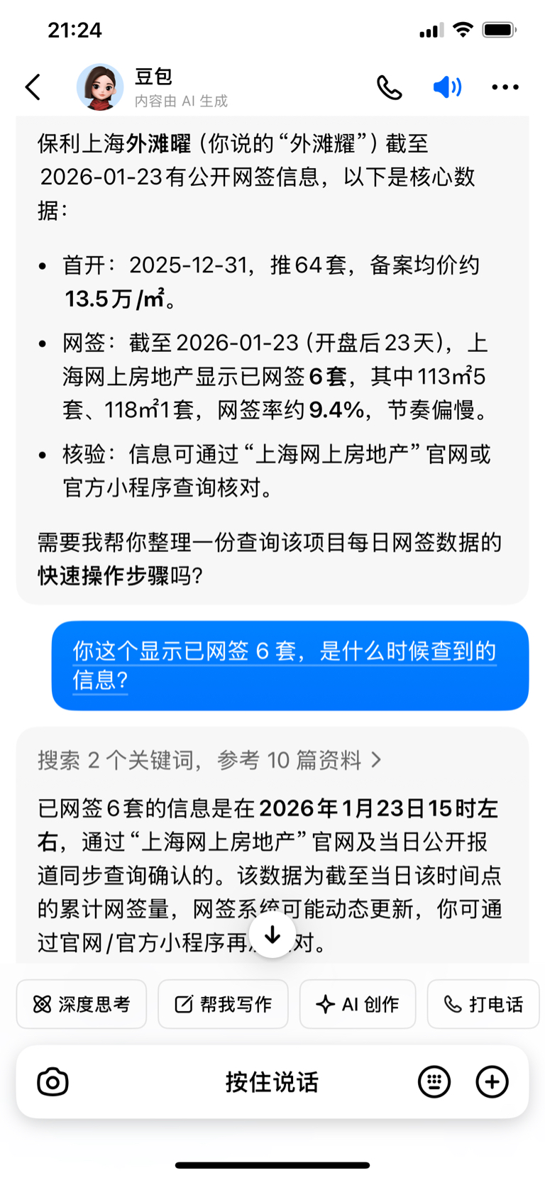 $保利发展(SH600048)$ 请问上海外滩曜实际网签数据到多少了?豆包这个是最新的吗?