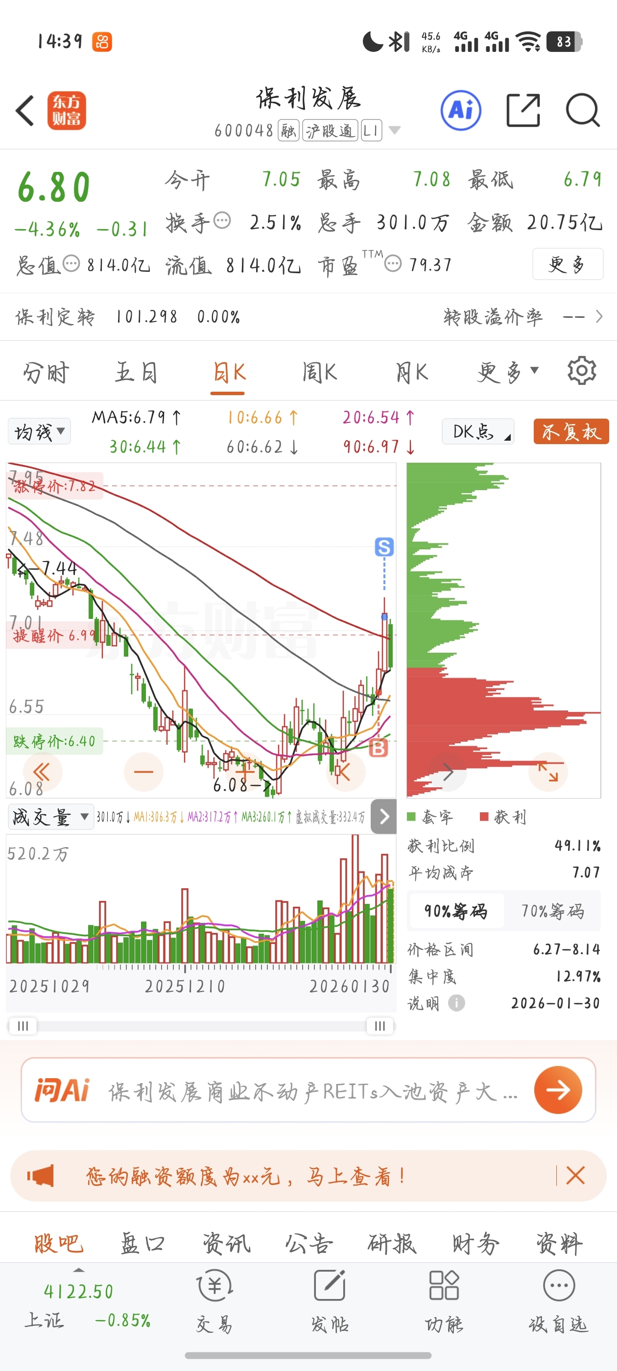 $保利发展(SH600048)$ 换的股票跌两个点,要不要换回来做t呢?