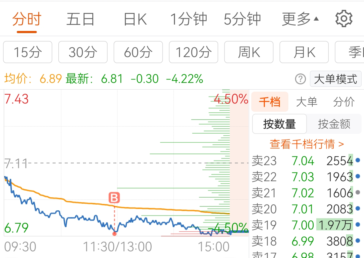 飞不起来,又给我抓住了。6.80是昨天设的提醒价,还真跌回这里。想再套我就没那么容易咯,成本和仓位都降了,正反T都能做。给你表演一个咸鱼翻身。$保利发展(SH600048)$