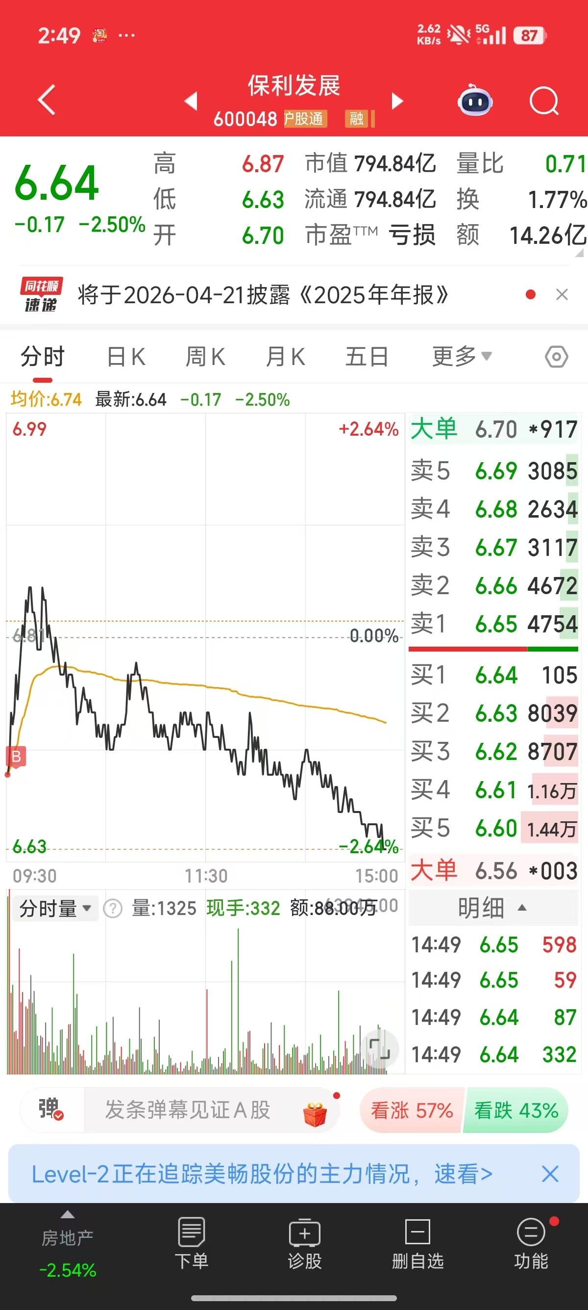 开盘加仓保利发展!