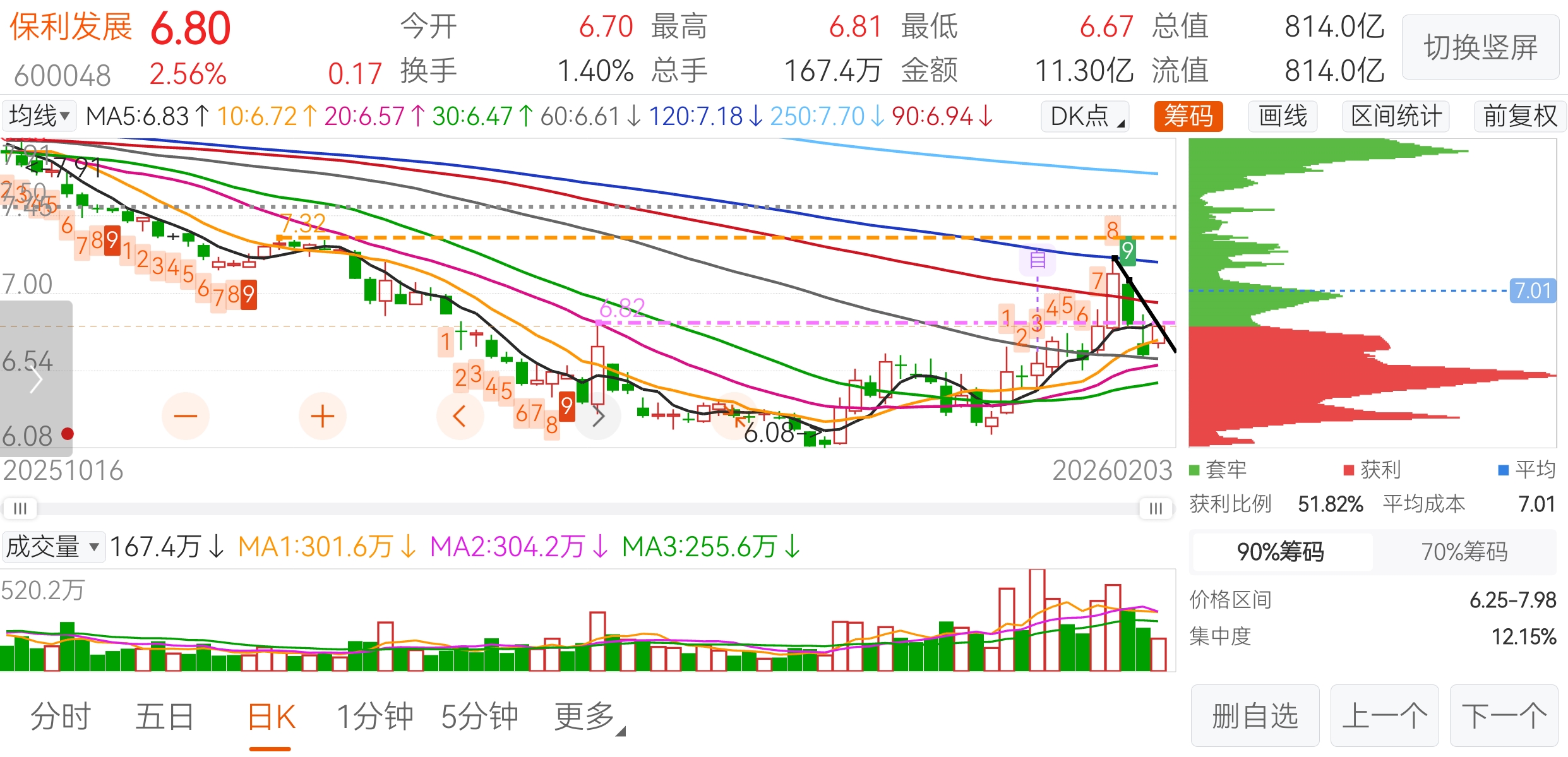 虽然我5局5胜,不过次次都是小赚,这个庄还是挺厉害的,第4局差点被他逮住了,好在我也是老油条了,没那么好抓。现在第5局未结束,不过成本很安全,只要我不犯错,基本逮不到。$保利发展(SH600048)$