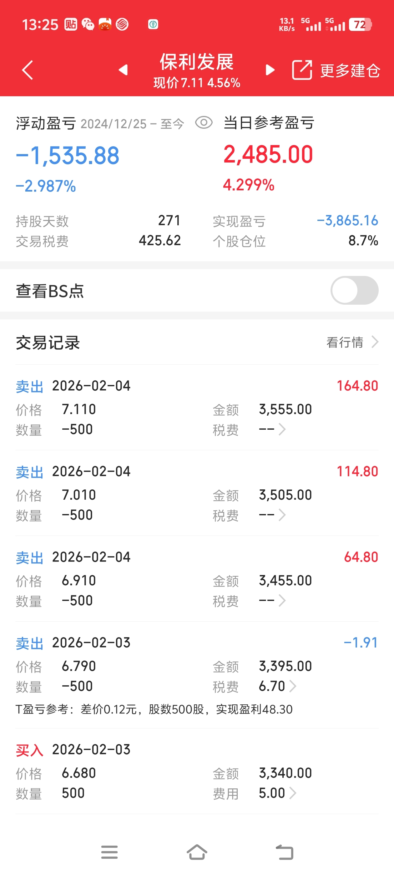 $保利发展(SH600048)$ 赶紧下来,我要接回来