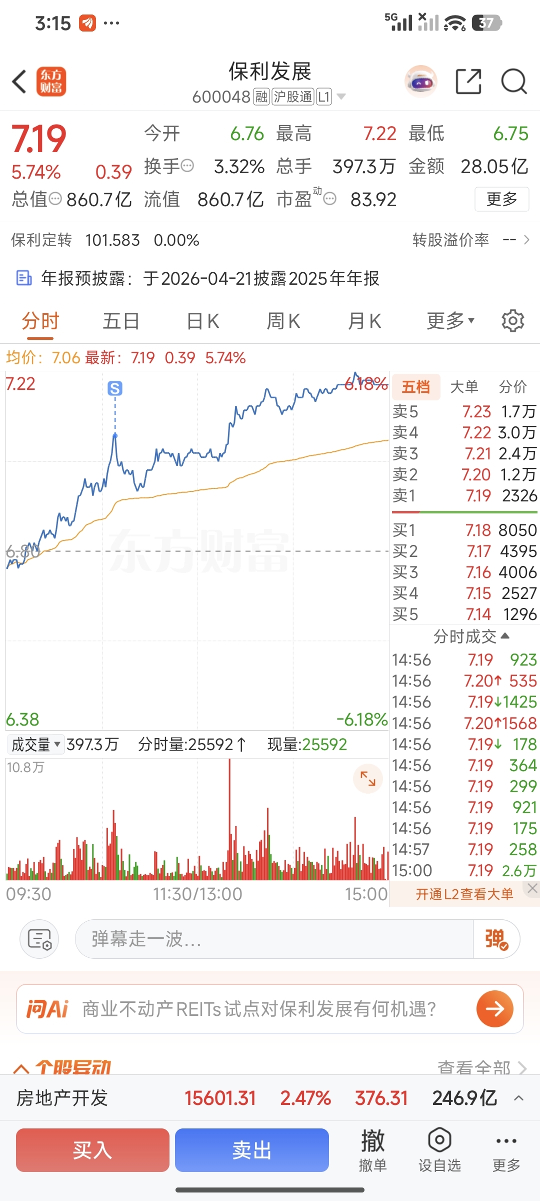 $保利发展(SH600048)$ 8.76的成本,今天上午全部清仓了