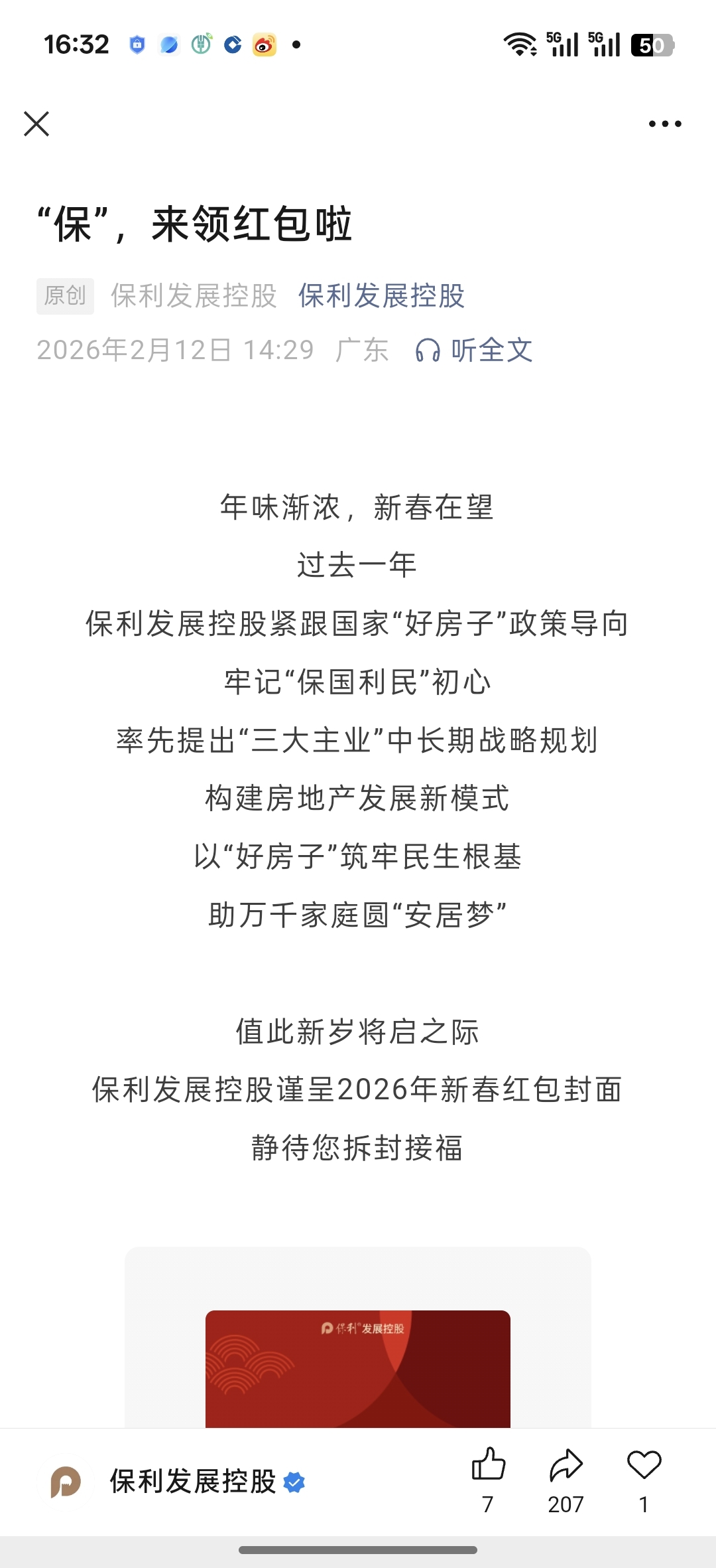 $保利发展(SH600048)$ 散户的我们,给保利发红包拉