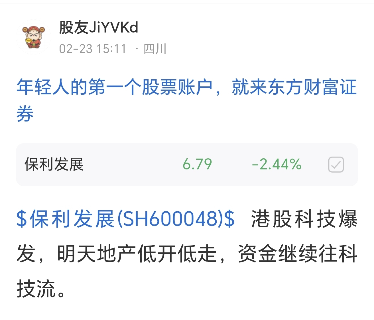 $保利发展(SH600048)$ 符合预期,大盘半导体起飞,散户们继续抄底保利,千万不要来科技。