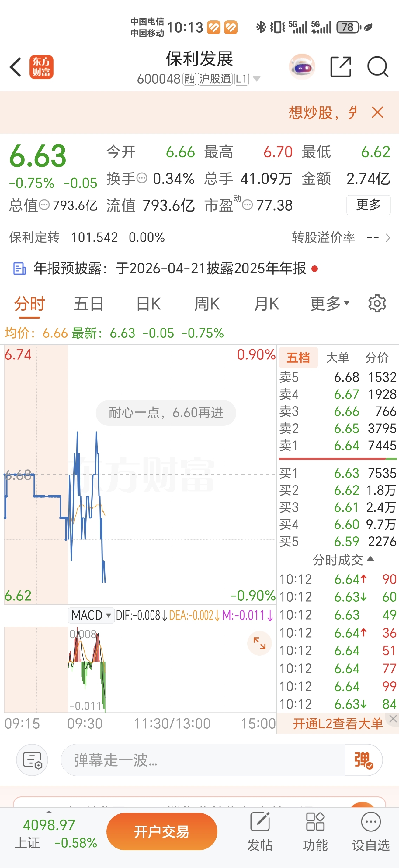 $保利发展(SH600048)$ 漂亮,大盘起飞了,保利发展速度跳水,主力们开始加大力度做空,散户们加油抄底。