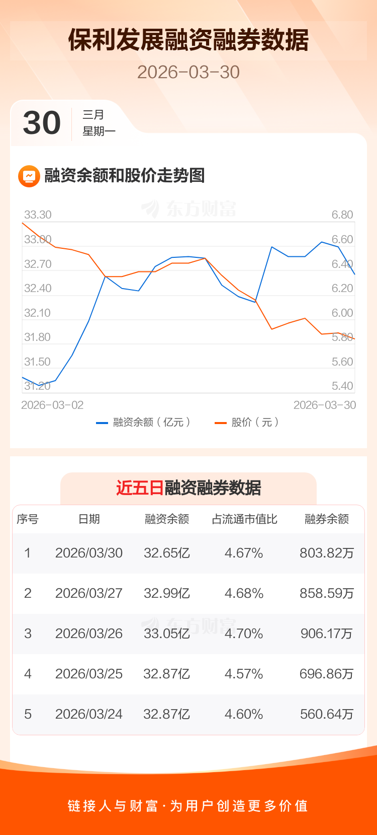 交易所最新数据显示,保利发展于2026年3月30日获融资买入5727.20万元,融资偿还9125.23万元,当日融资净偿还3398.03万元。目前,该股融资余额32.65亿,占流通市值比例为4.67%。