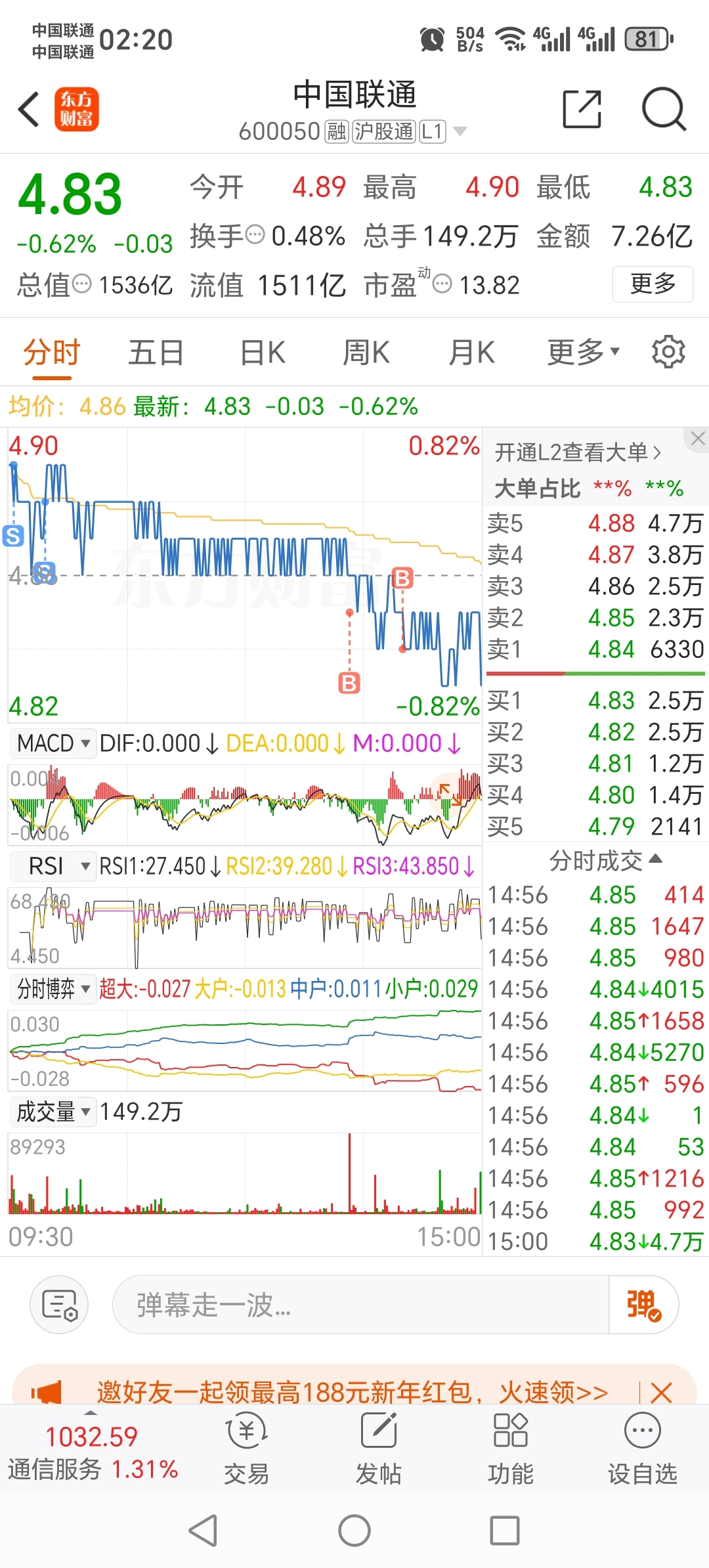 $中国联通(SH600050)$ 搞来搞去就中国联通能稳定赚钱,还不伤脑,中国联通套的1万全在外面亏完还多亏几万,再也不敢买其他的太伤脑,量化现在越来越强大,越来越难玩