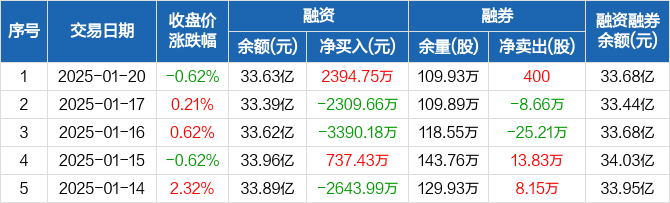 中国联通:融资净买入2394.75万元,融资余额33.63亿元(01-20)