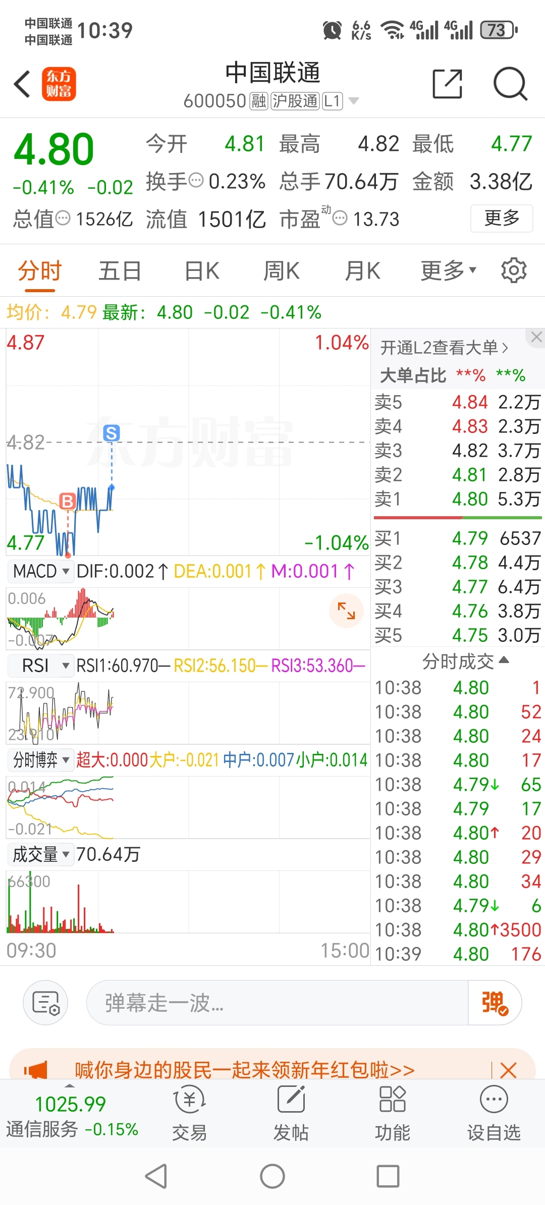 $中国联通(SH600050)$ 只能慢慢套了