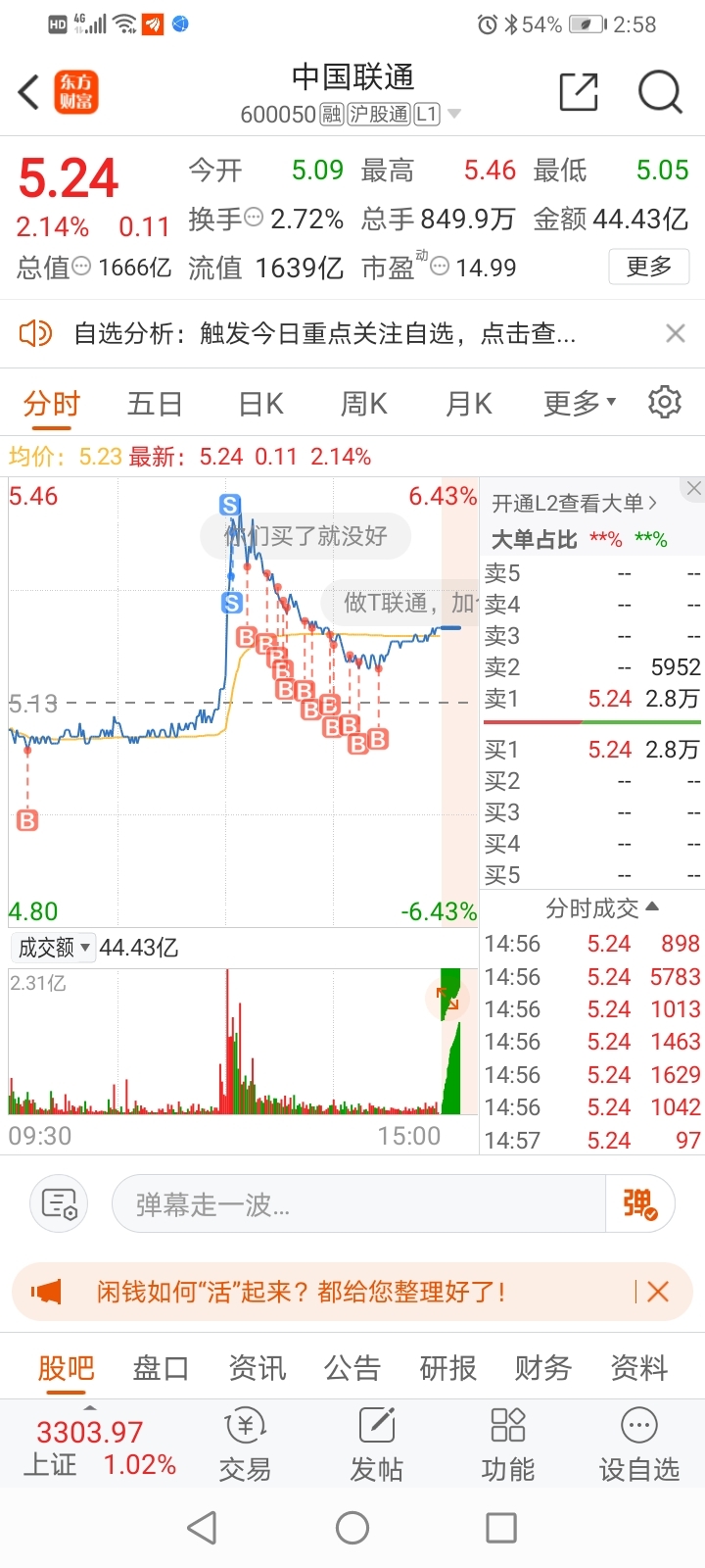 $中国联通(SH600050)$ 本来跑了。有套上了