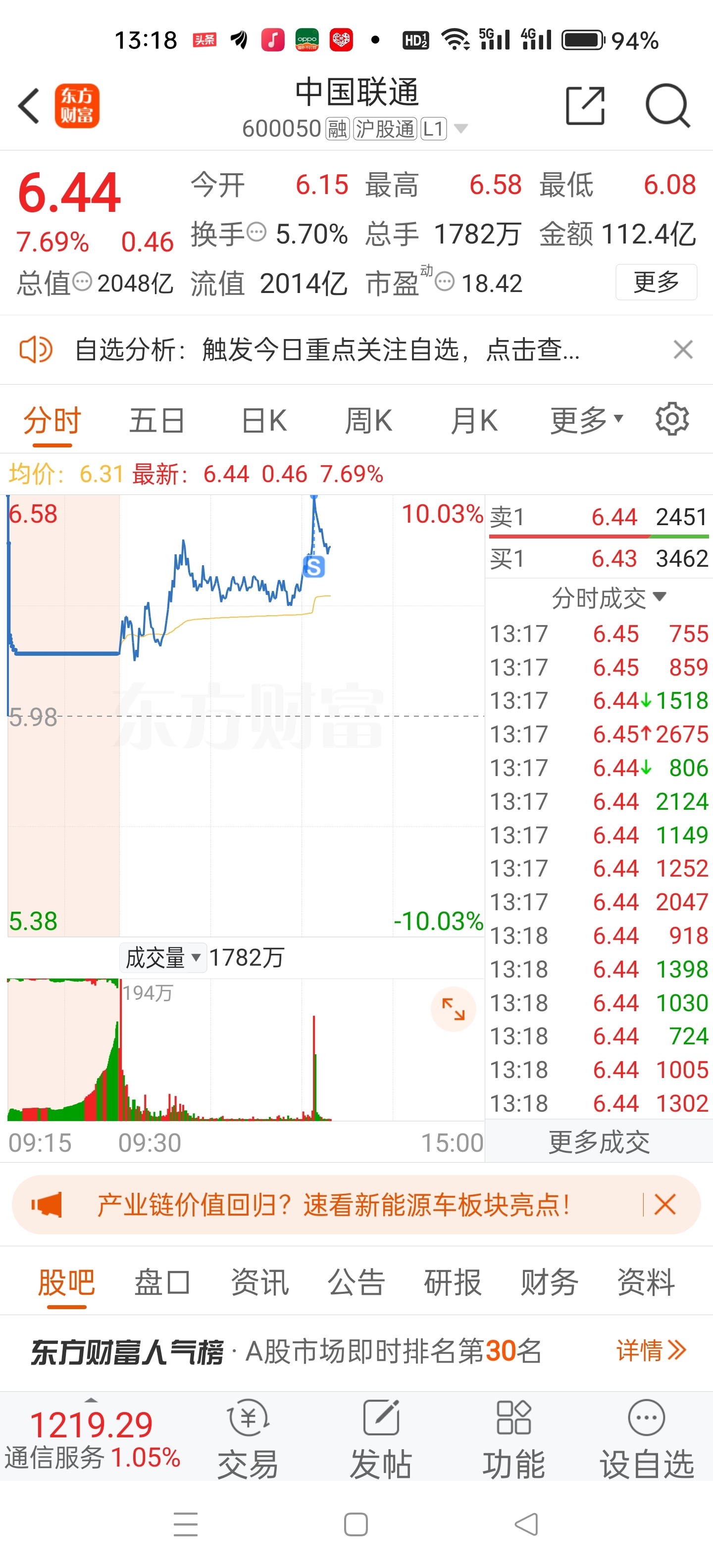 $中国联通(SH600050)$