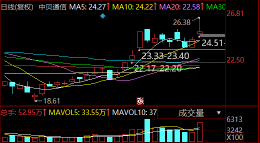$中贝通信(SH603220)$中贝通信603220:今天他如期走强,不过是一个冲高回落的走势。其实也可以理解,过前高换换手未必是坏事,主要还是看明天了,明天的承接走强态度很关键。中贝通信,是老猿昨日潜伏的,在留言区及时说了,还是老剧本隔日就走强。昨日挖掘他的逻辑如下,一个是他属于算力题材,属于市场主流方向内的挖掘,不跑偏。二个是他家算力方面的业务做得不错,在手算力达到1万P,当下AI大热对算力需求很大,公司有望充分受益。三个是他本轮涨幅不大,还属于低位个股,是有补涨预期的。