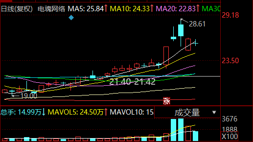 电魂网络603258:今天没走,想再看看AI游戏的轮动情况,十均线上方还能看看。电魂网络,是老猿周一早上分时回落低西的,当时敢于分时回落低西他的主要逻辑思考,一个是AI的高位股走弱,那么内部要进行高低切,AI游戏是个不错的低切方向,他在AI游戏内属于强势股,自然是绕不开的;另一个是,技术上他整体位置很低,符合高低切标准,而且前面蓄势后,上周五刚刚换手启动,短期还有潜力。