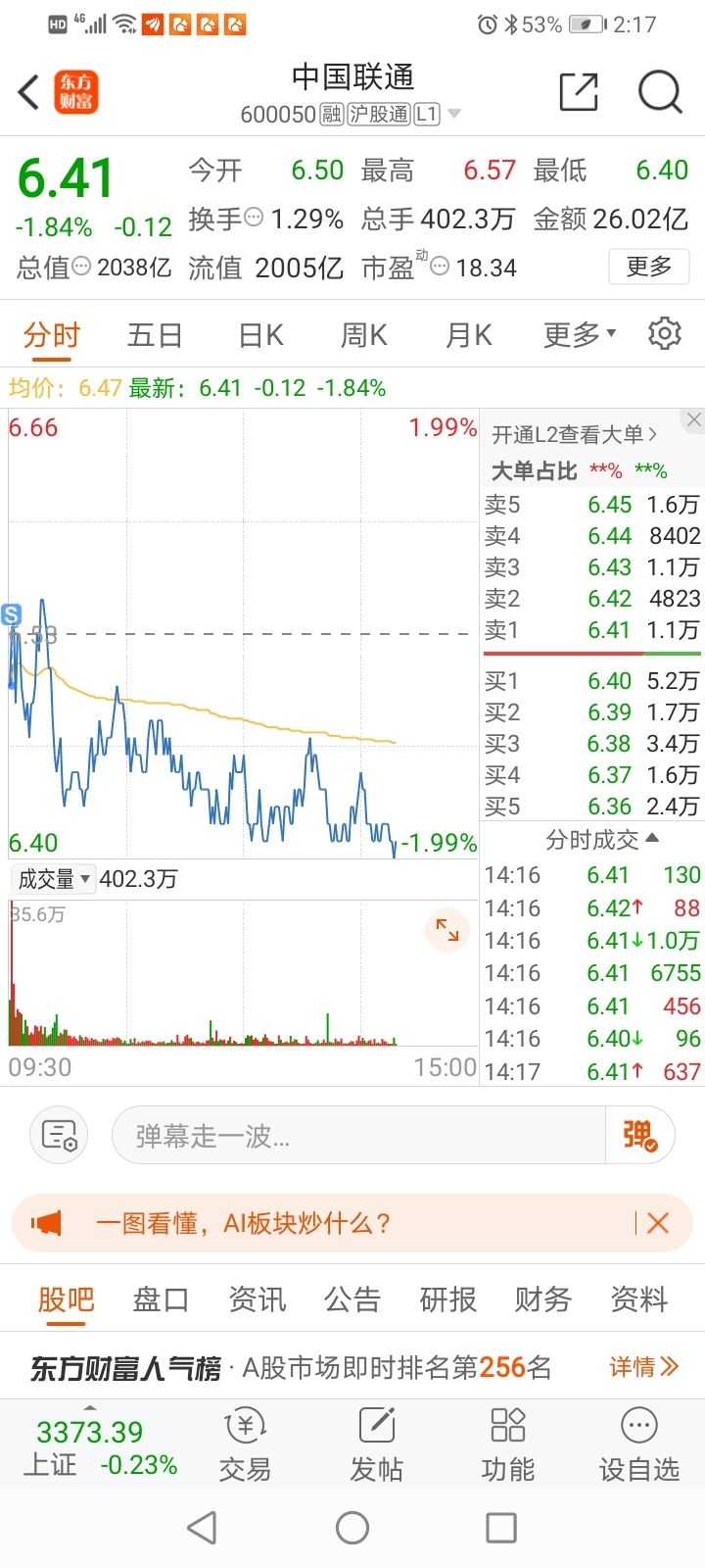 $中国联通(SH600050)$ 早盘卖了,挂在6.37能吃回来不