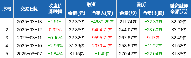 中国联通:融资净偿还4689.25万元,融资余额32.39亿元(03-13)