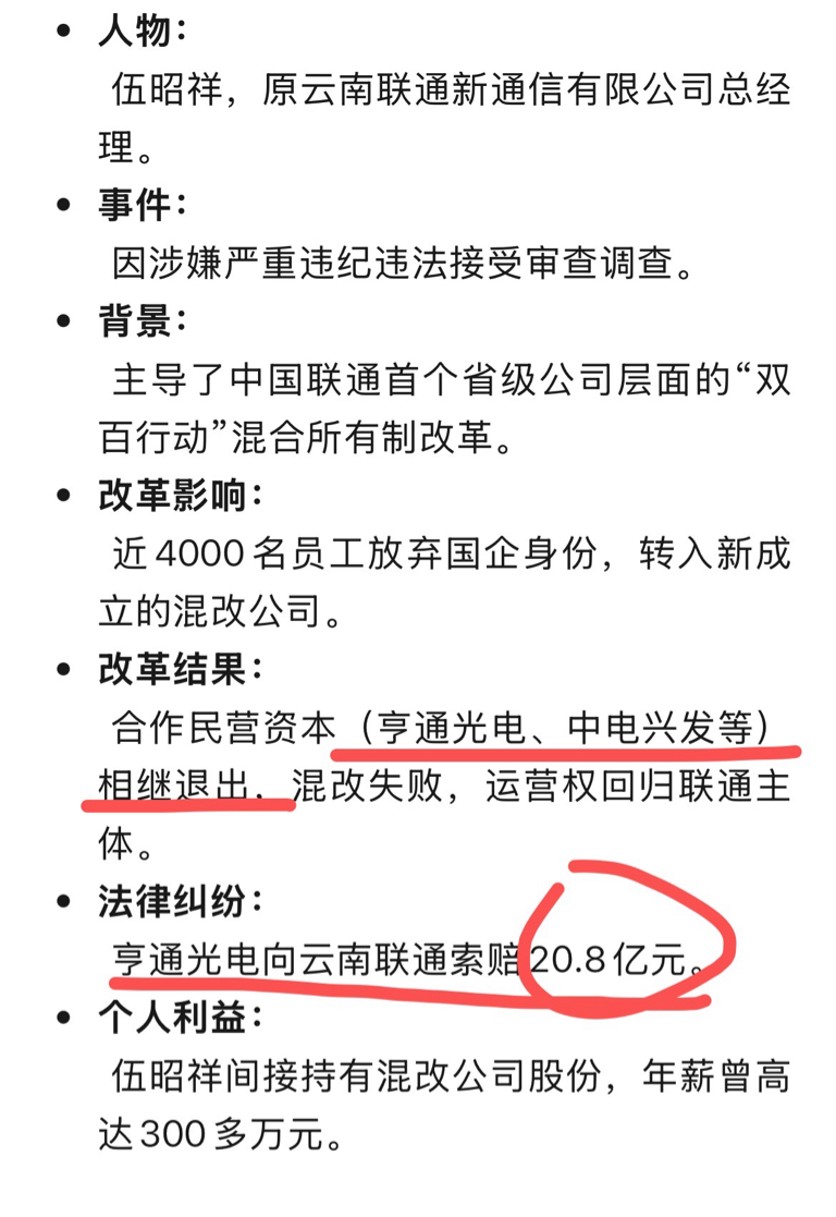 一盆冷水泼来,亨通光电向云南联通索赔20.8亿元!运营商混改悲歌:伍昭祥被查,云