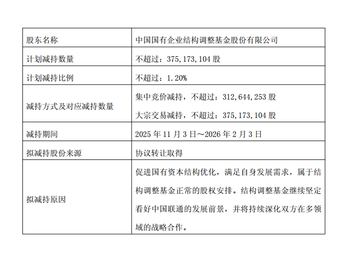快讯:中国联通股东拟减持3.75亿股,持仓成本价为6.83元(未减去分红)