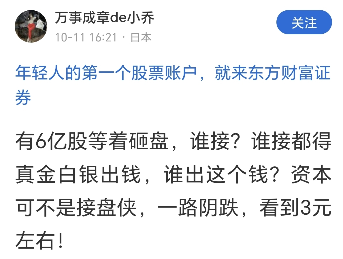 温馨提示: 1.根据《证券法》规定,禁止编造、传播虚假信息或者误导性信息,扰乱证券市场;2.用户在本社区发表的所有资料、言论等仅代表个人观点,与本网站立场无关,不对您构成任何投资建议。用户应基于自己的独立判断,自行决定证券投资并承担相应风险。《东方财富社区管理规定》