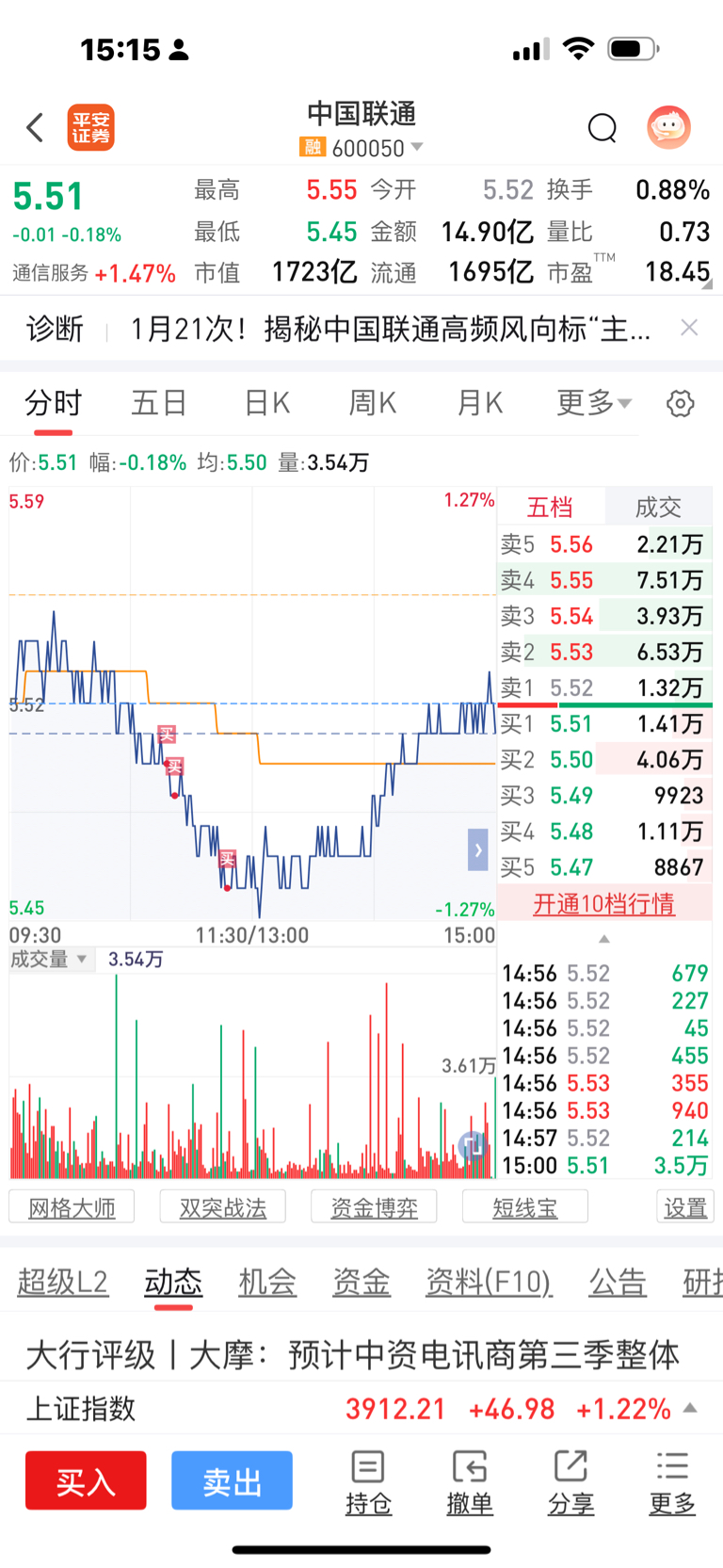 $中国联通(SH600050)$ 低于5.5的区间,有米我就存在这里。