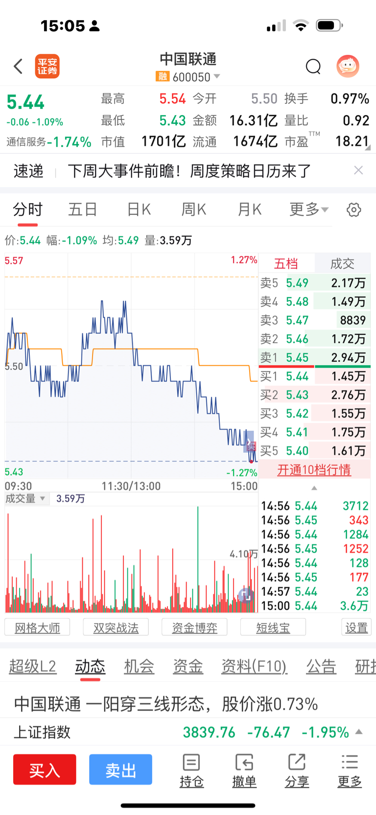 $中国联通(SH600050)$ 这一周有点惨,利润已经降到50以下了