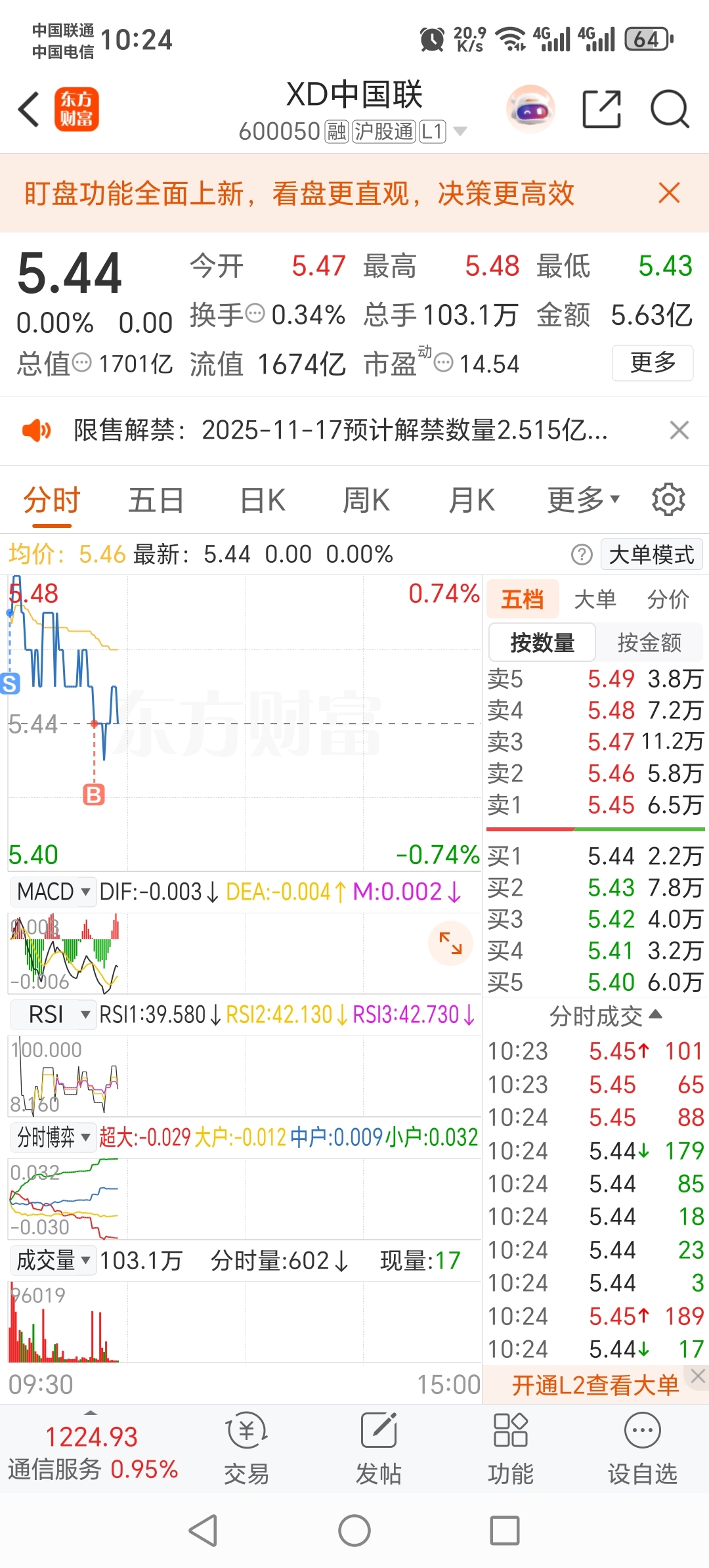 $XD中国联(SH600050)$ 每天0.5赚个饭钱
