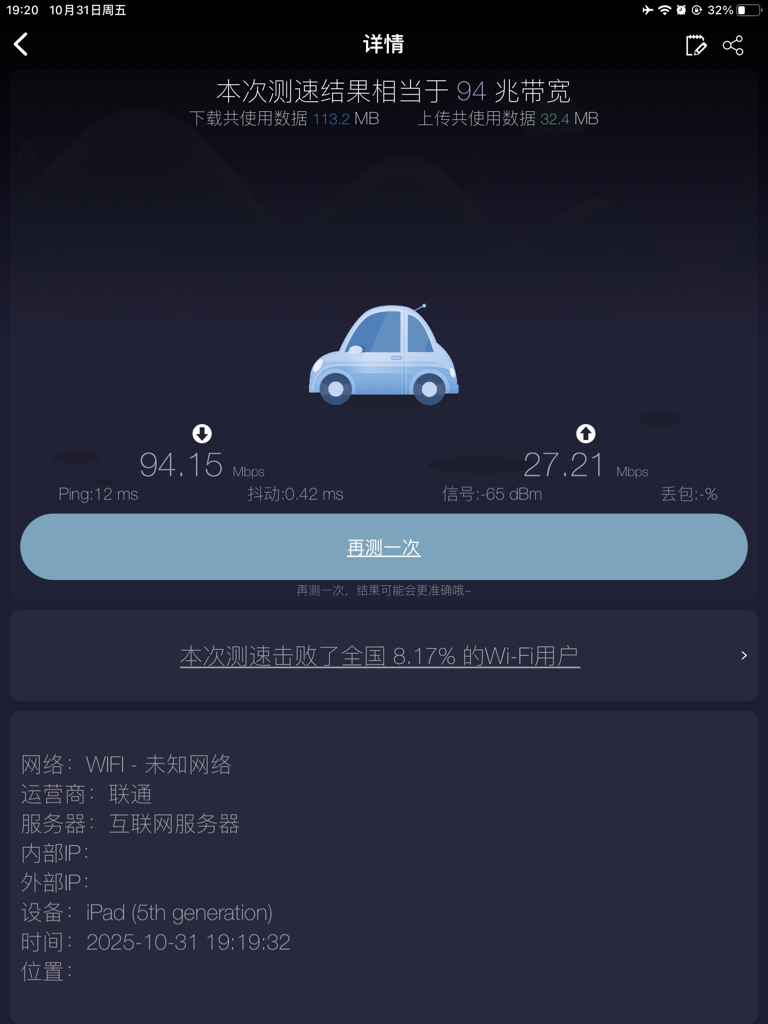 联通的派师傅来查看、检测时,测网速有1000兆(实际800m左右),我用电脑测速也是800m左右,用手机测wf是400多兆,师傅走后就把网速带走了,过一会再测速只有90兆左右(估计他们用手机或是电信设备随时在控制网速)……正准备在通信管理局和工信部投诉它们。诸位股友:有更好的方法投诉、解决这糟心的问题吗? //@同生极乐国cf :家里闲放着七个路由器。联通的是“光猫”和自带的5G路由器,都是中兴的,自己买的路由器用不上了