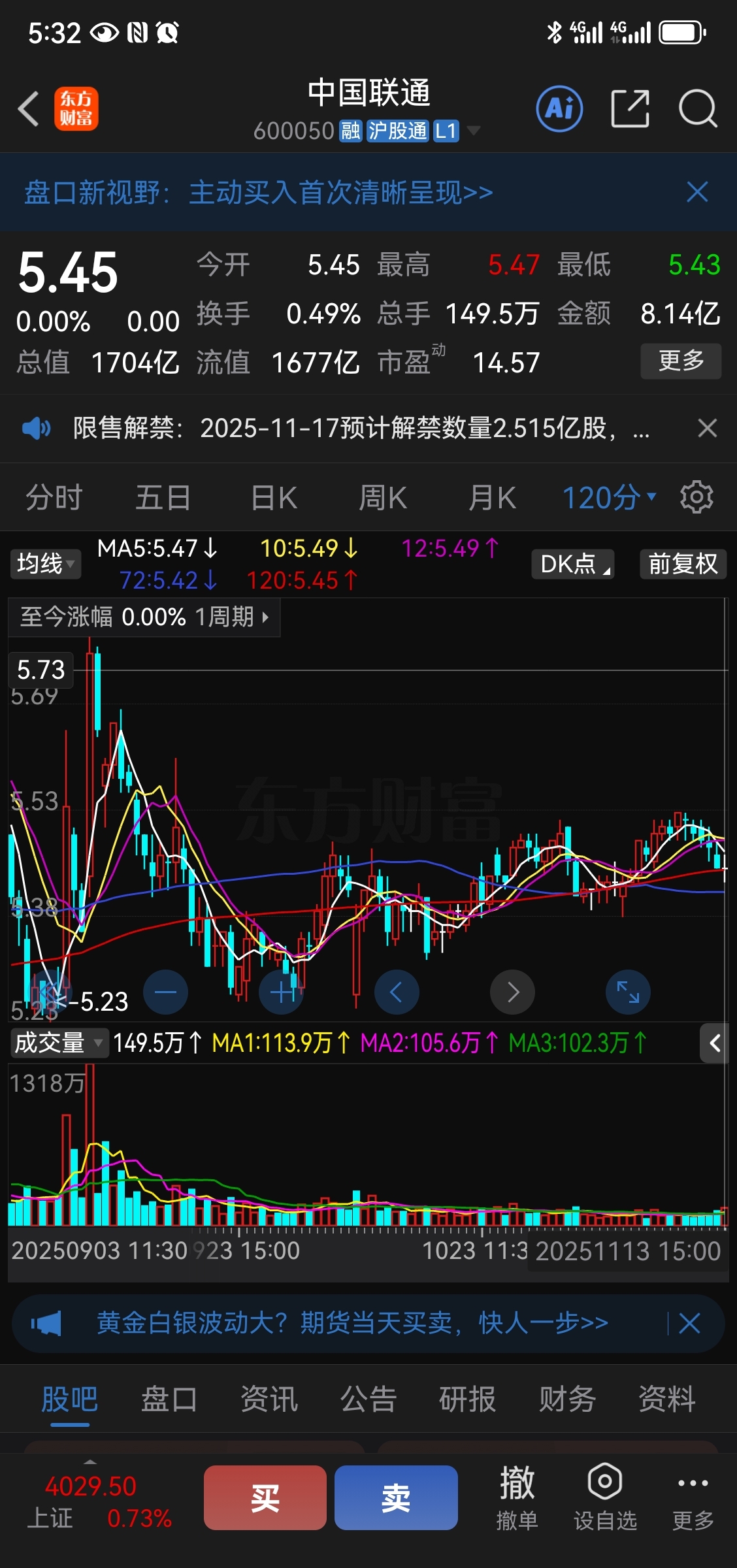 $中国联通(SH600050)$ 放量十字星变盘在即