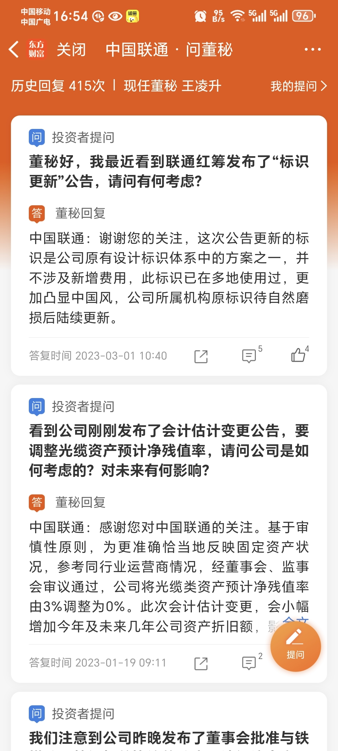 $中国联通(SH600050)$ 我以为东航物流的董秘一年没回复多算极限了,中国联通让我开眼了,快三年了