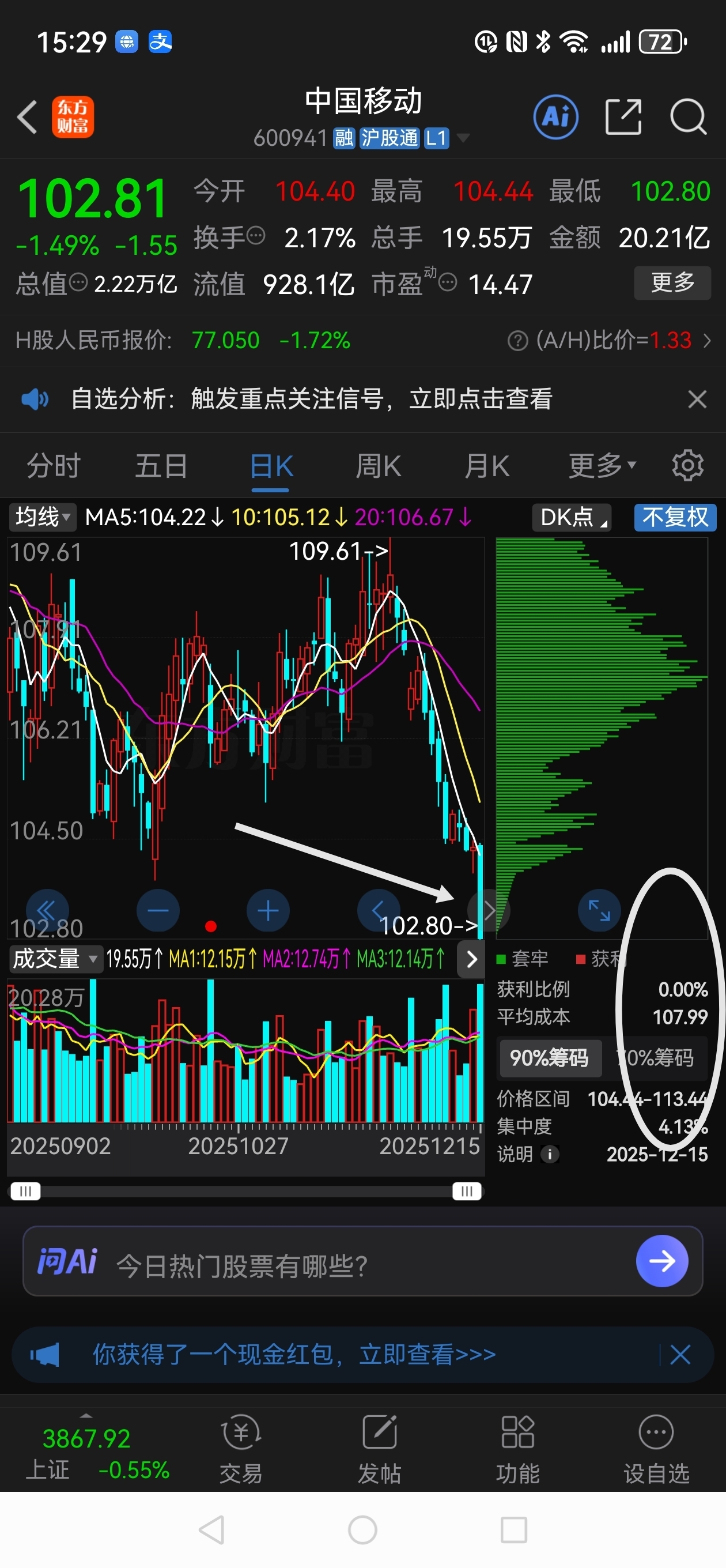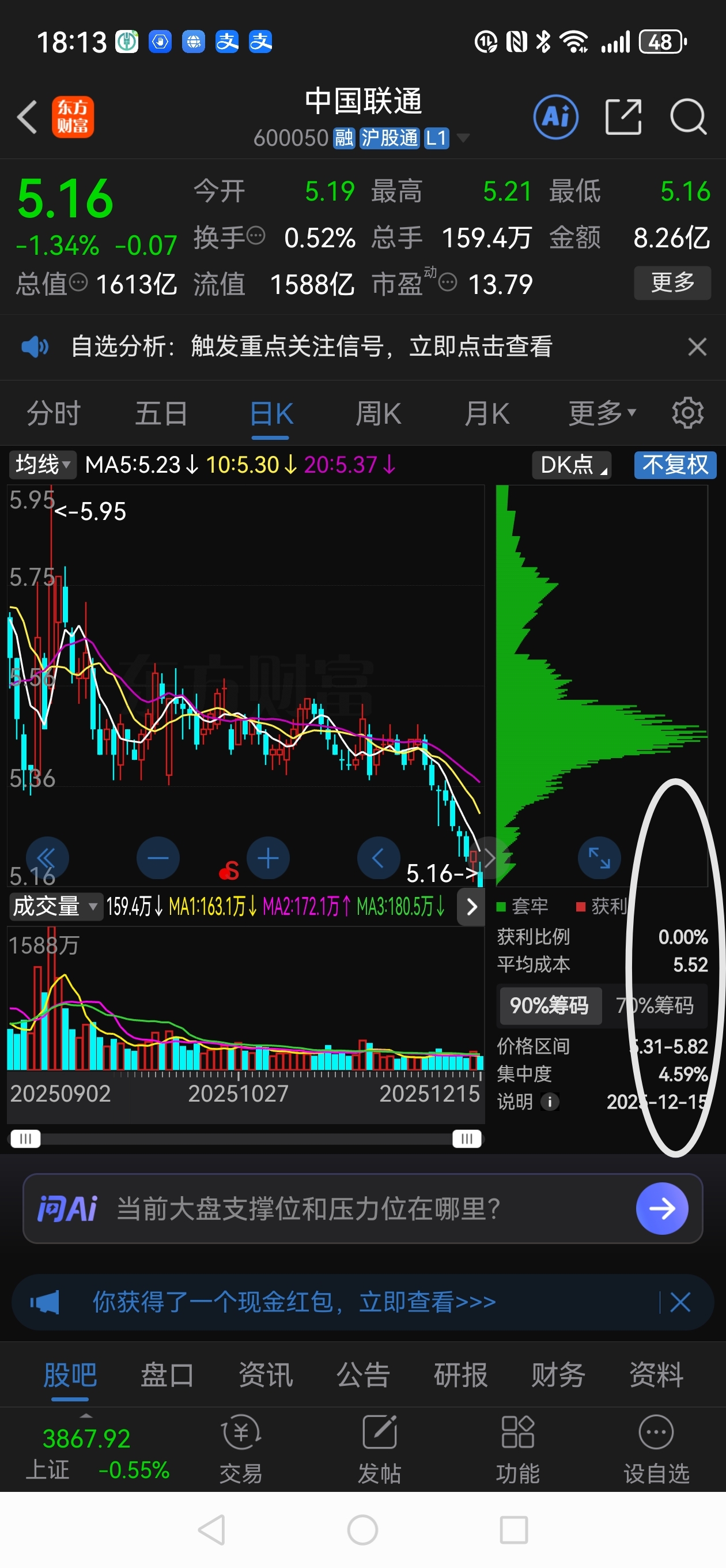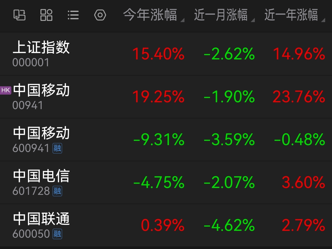 $中国联通(SH600050)$  今年电信三大运营的中国移动,中国电信和中国联通全部跑输上证指数。目前盈利的人全部归零了,一地鸡毛啊。
